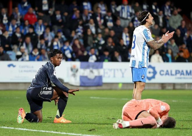 虽然是客场作战,但是实力强大的皇马,一上来就开始围攻塔拉韦拉,第4分钟恩德里克右路传中,姆巴佩面对绝佳机会打门被封堵,第17分钟恩德里克带球杀入禁区,但被防守球员身后放铲破坏了皮球,没有能够形成射门,第27分钟皇马获得前场定位球的机会,居莱尔直接轰门兜射远角,皮球被主队门将飞身扑出。